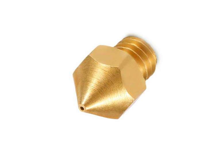 La boquilla es la parte final del hotend por donde sale el material fundido. Es un pequeño orificio metálico, normalmente de latón o acero endurecido, cuyo diámetro determina el grosor del hilo que se deposita. El diámetro más común es de 0,4 mm, aunque existen boquillas más finas para mayor detalle, o más grandes para impresiones rápidas.