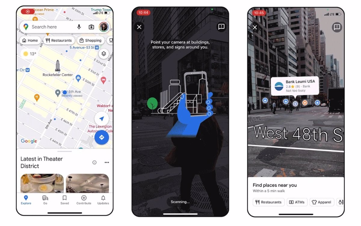 - Google Maps Live View: Muestra indicaciones de navegación superpuestas sobre el mundo real usando RA, facilitando la orientación.