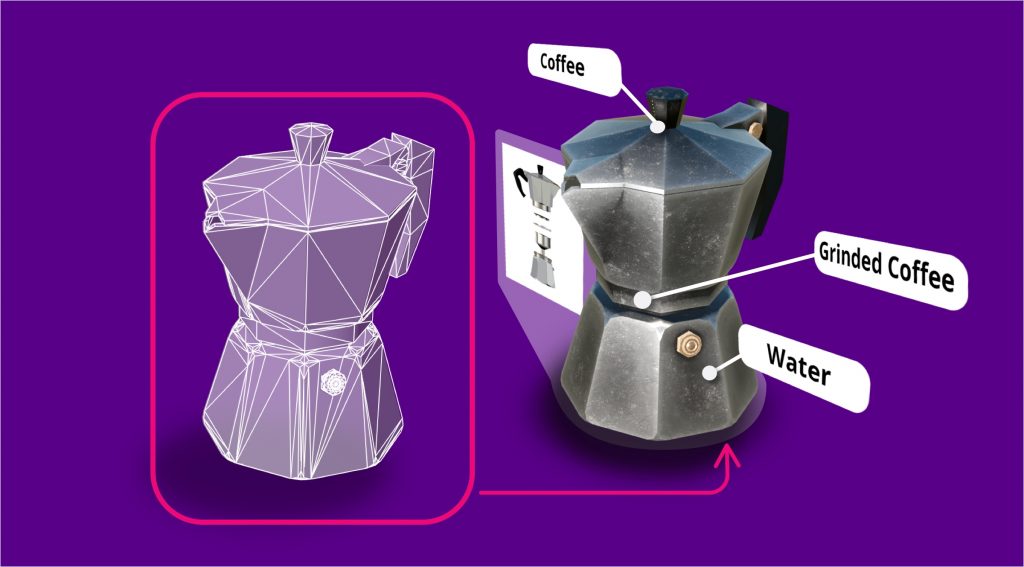 Se trata de generar un tracking completo sobre un objeto real y, por tanto, lograr hacer un seguimiento de cualquiera de sus partes de manera muy precisa. Normalmente este tipo de tracking se logra partiendo de una réplica 3D (al menos la estructura) del objeto real. Dicho modelo 3D (que no necesita tener un acabado realista y texturizado, simplemente la estructura) representa el esqueleto del objeto y nos sirve para realizar la fase de entrenamiento y posteriormente detección del objeto.